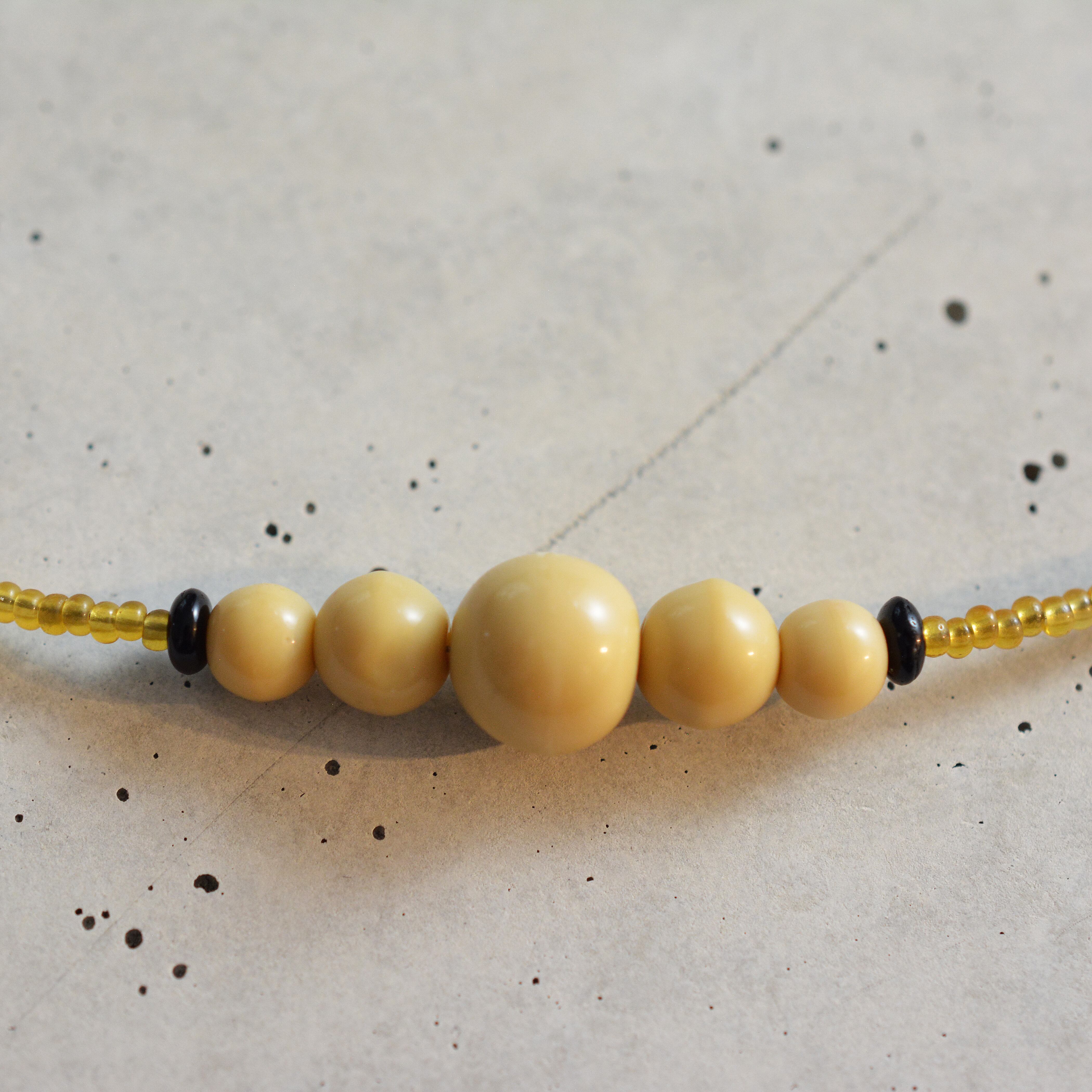 ビーズのいびつな形、キズや汚れも個性ととらえ、それを生かし、