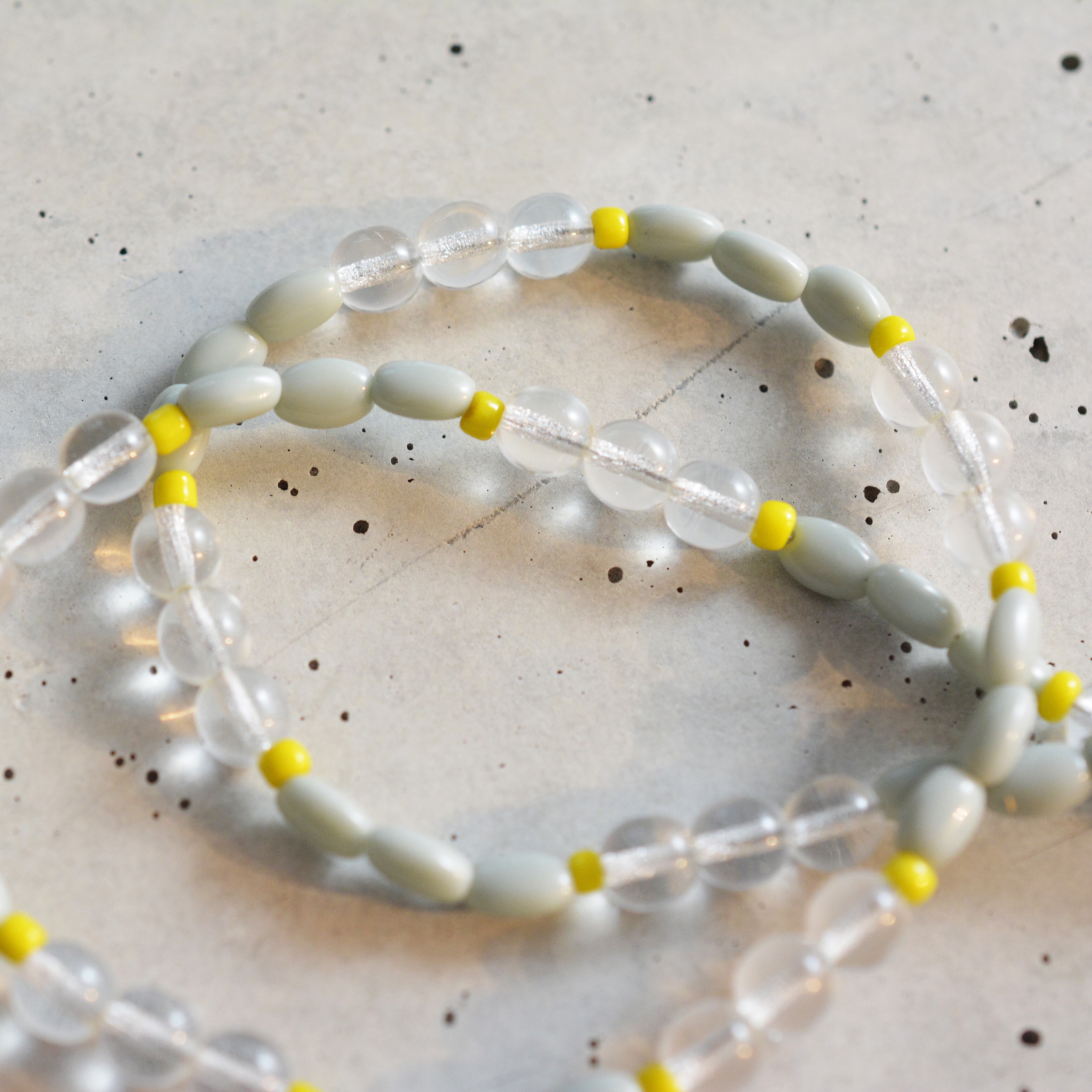 ビーズのいびつな形、キズや汚れも個性ととらえ、それを生かし、