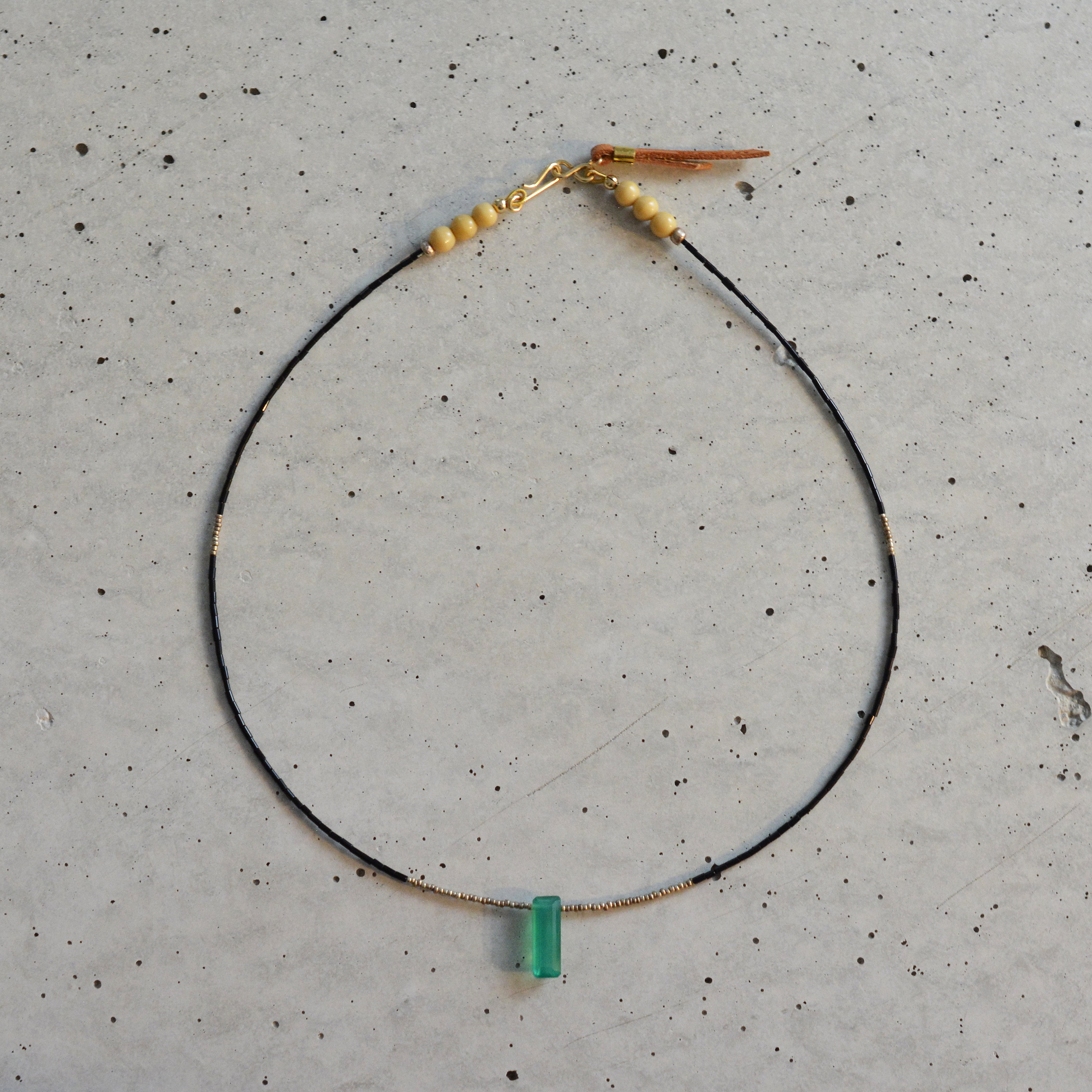 トップには上品な透明感のグリーンオニキス。